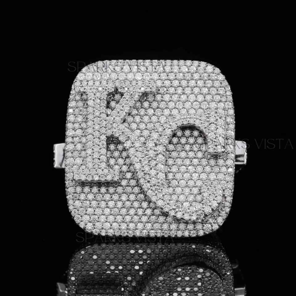 SPARKVISTA Custom Men's 925 Sterling Silver Fashion Ring Hip Hop Style Initial Letter KC with Moissanite Iced Diamond Jewelry