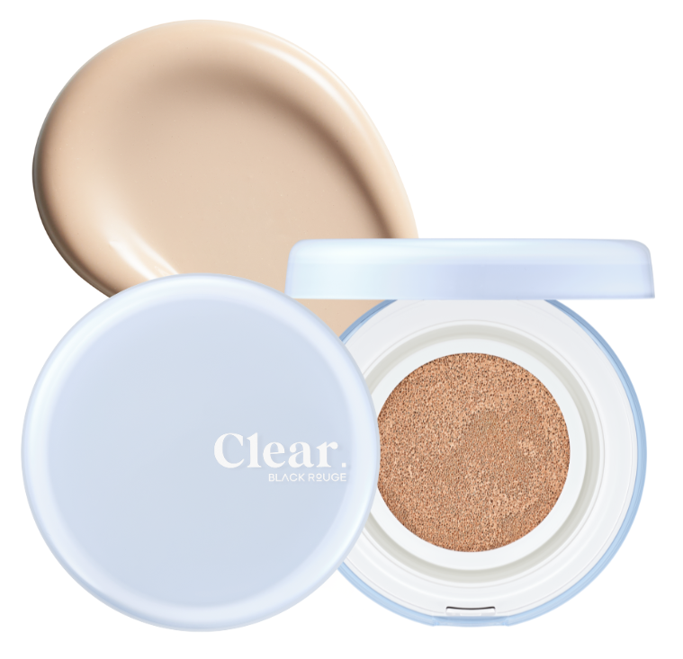 SPF50+ PA++++ Thin Layer Clear Cushion Black Rouge Korean Vegan Face Makeup with Semi-Glow Finish Cool Moisture Pearl Extract