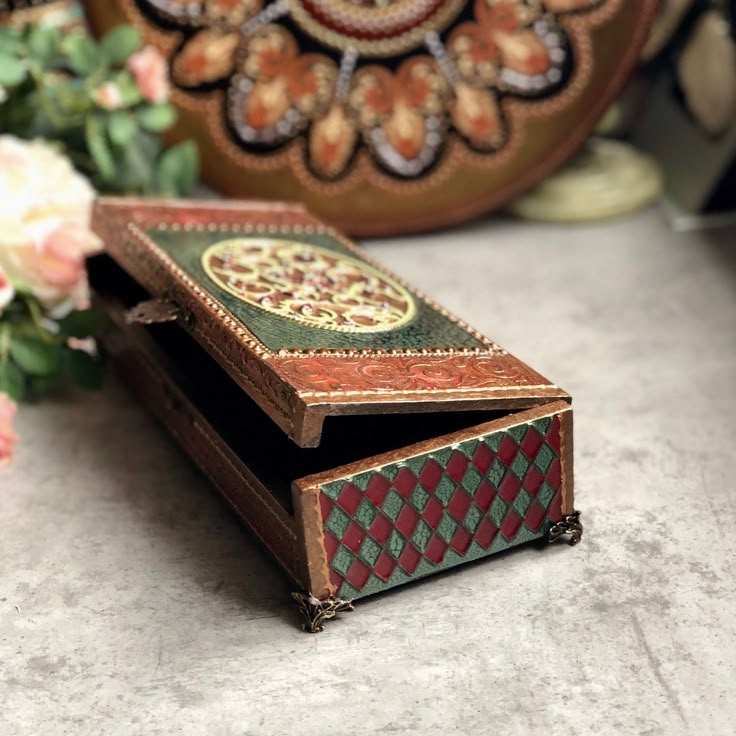 SPICES NATURAL WOODEN Premium Printed Home Wooden Tabletop Spice Box With Separate Compartments for Spices and Dry Fruit Box