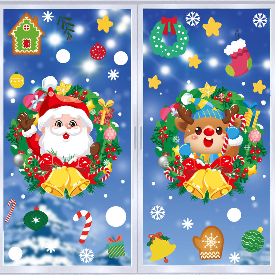 SPRING PLANTING New Christmas Decorations Santa Claus & Snowman Static Clings Party Decorations - Elk & Snowflake Glass Stickers