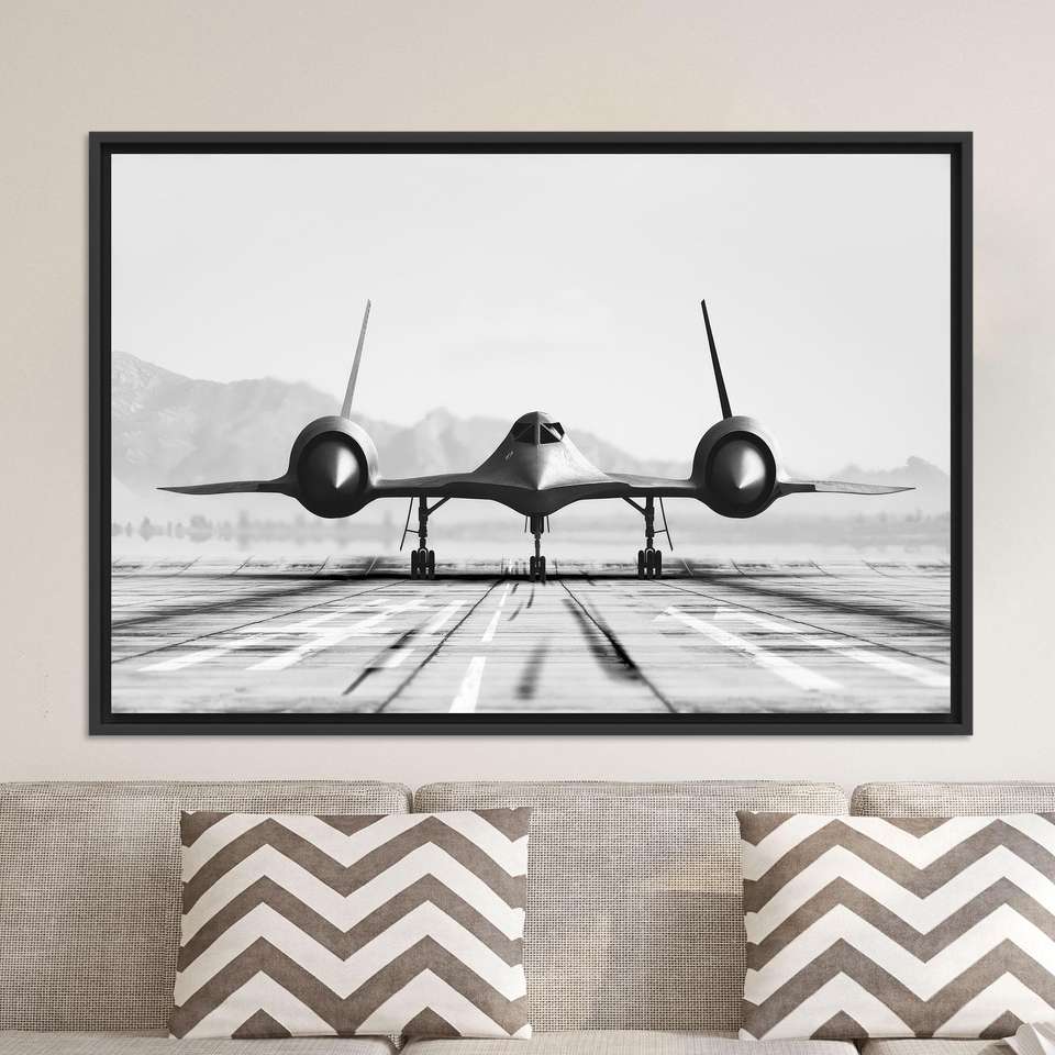 SR-71 Blackbird Monochrome Canvas Print Modern Aviation Wall Art,BLACK FRAMED CANVAS