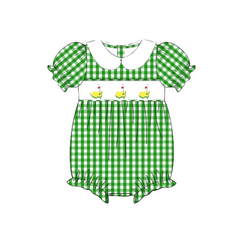 SR3455 Custom Infant baby green plaid golf pattern kids wholesale romper short sleeve jumpsuit child sleeper girl set