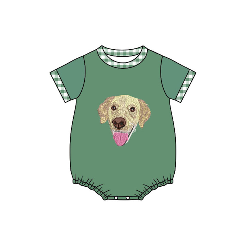 SR3470 Custom Infant baby kids wholesale brown puppy romper short sleeve jumpsuit child sleeper girl set