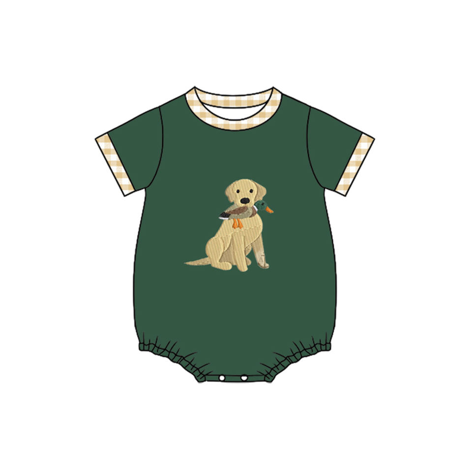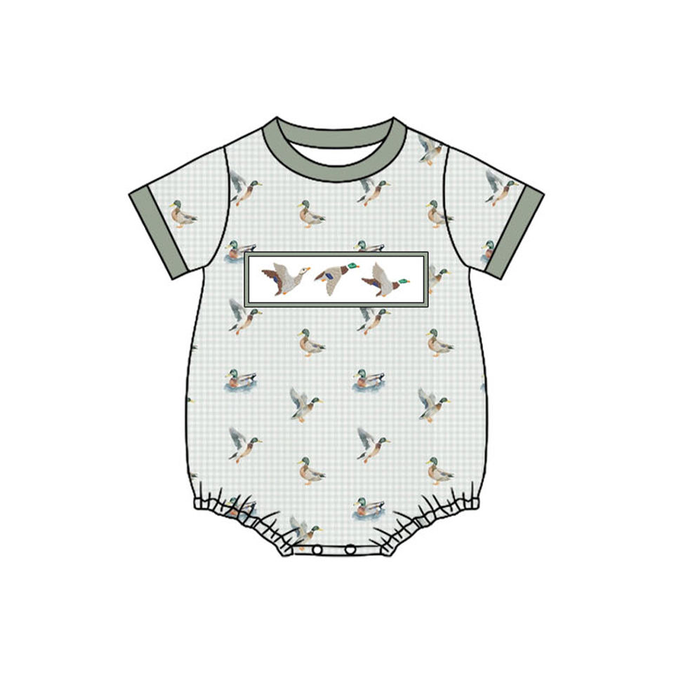 SR3473 CUSTOM Infant baby Green plaid duck pattern print kids wholesale romper flying sleeve jumpsuit boy bubble
