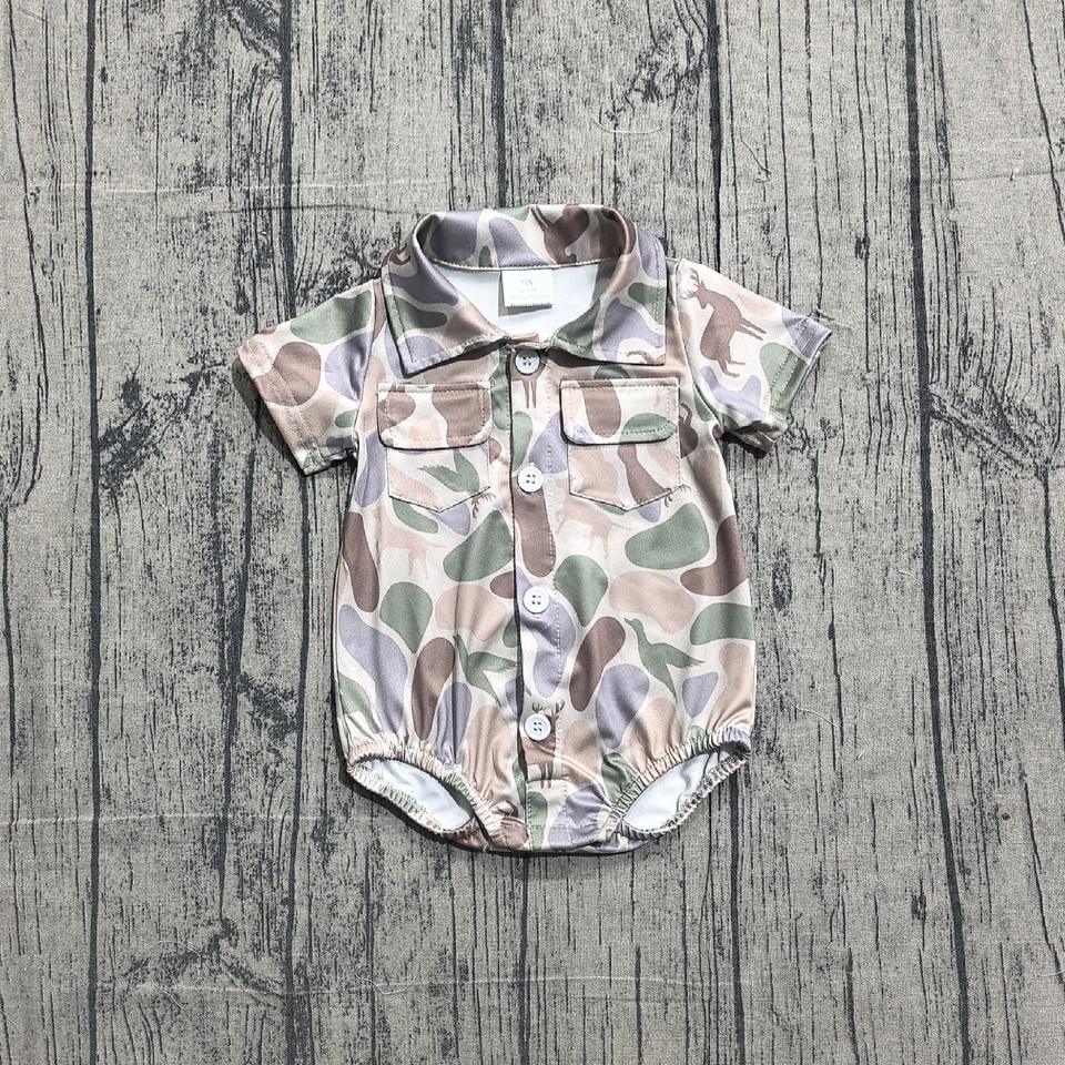 SR3544 CUSTOM Infant Baby duck deer puppy Kids Wholesale Romper short Sleeve Jumpsuit boy Bubble