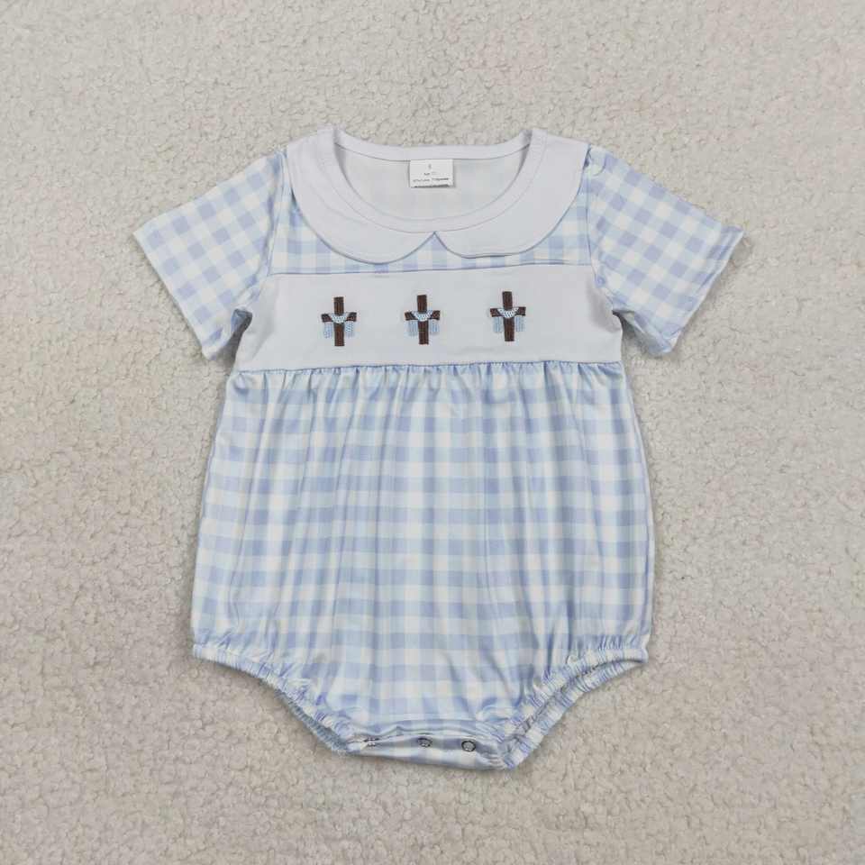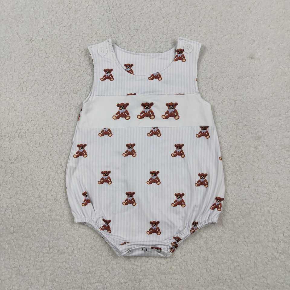 SR3570 RTS Infant Baby blue stripe bear Kids Wholesale Romper short Sleeve Jumpsuit boy Bubble