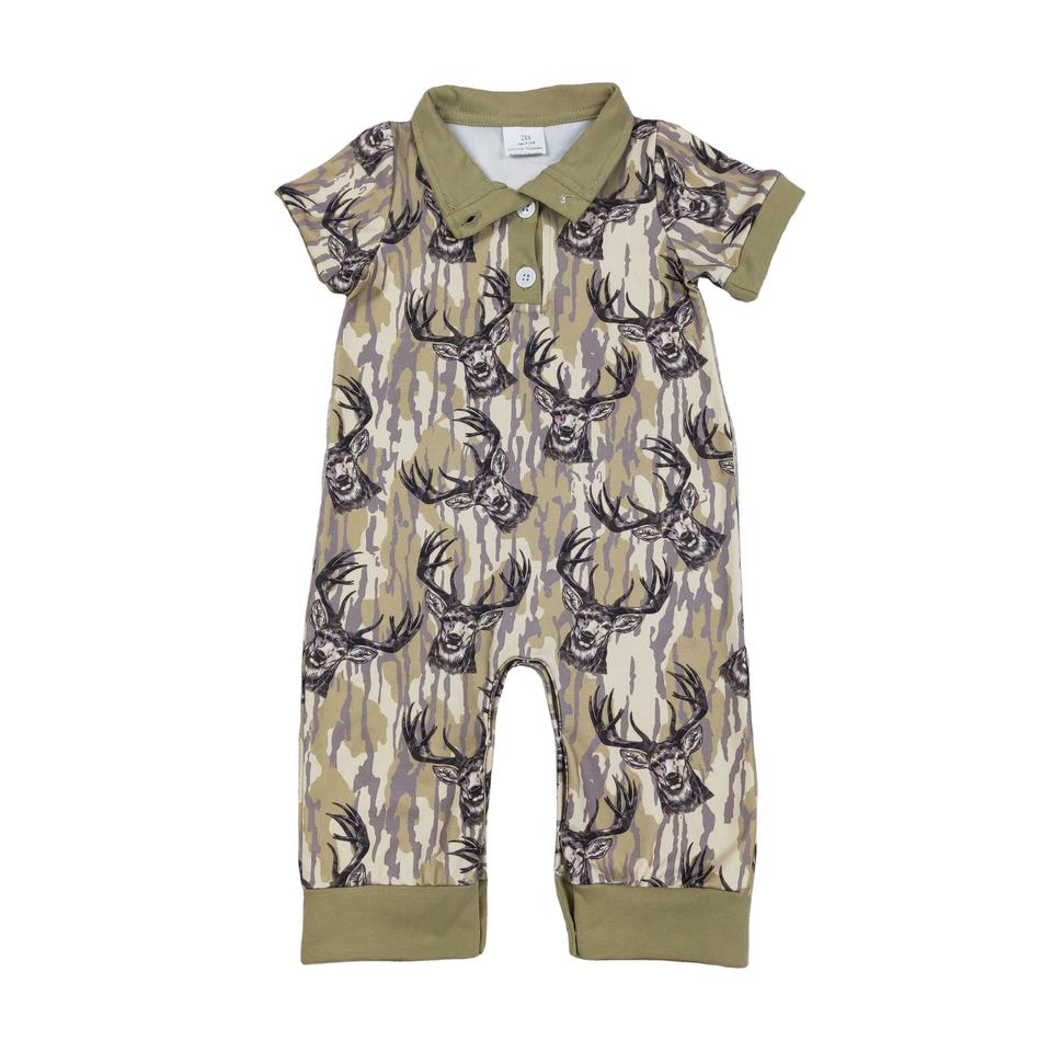 SR3635 RTS Infant baby CAMO Deer print kids wholesale romper Short sleeve jumpsuit bubble