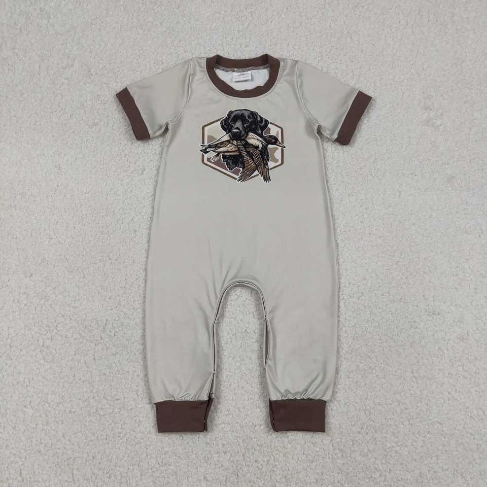 SR3680 RTS Infant baby Grey puppy duck print kids wholesale romper short sleeve jumpsuit child cute sleeper set