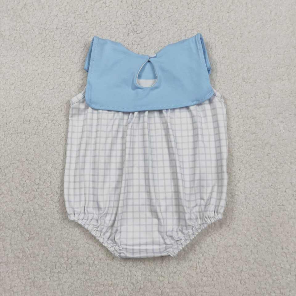 SR3751 RTS Infant Baby Blue Plaid Print Kids Wholesale Romper Sleeveless Jumpsuit Girl Bubble