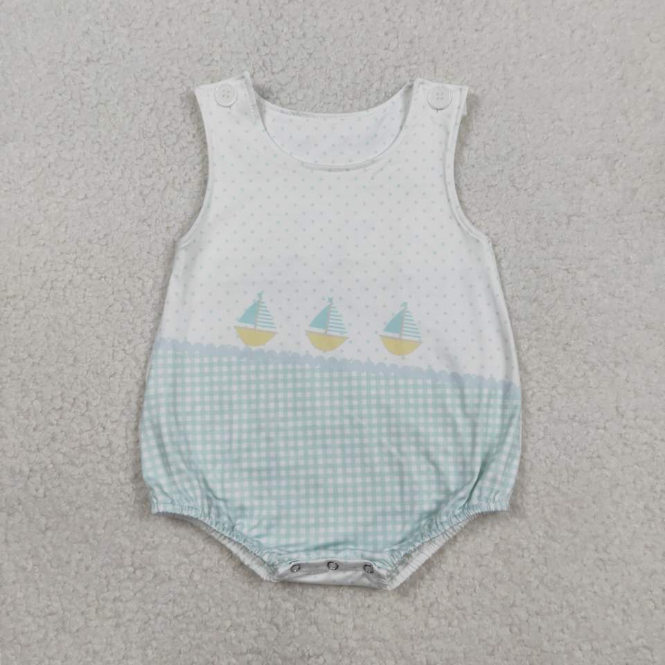 SR3754 rts Infant baby Small blue plaid polka boat kids wholesale romper sleeveless jumpsuit girl bubble
