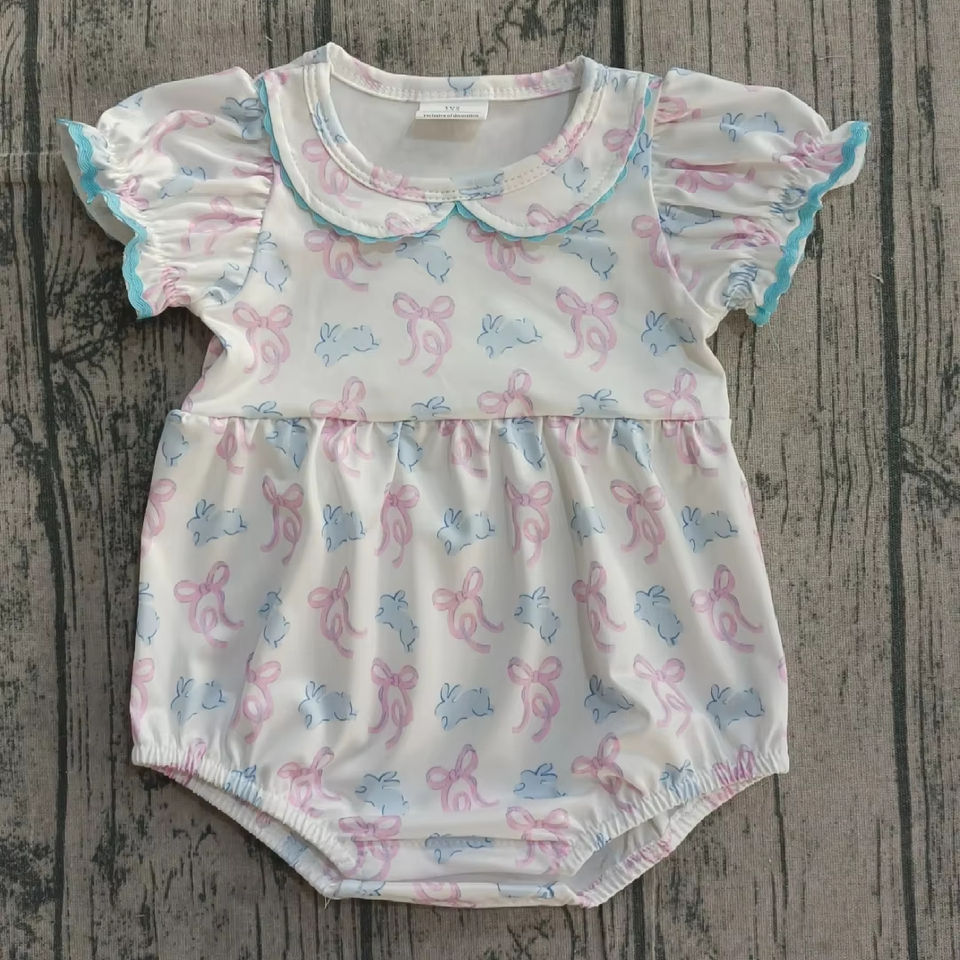 SR3938 CUSTOM Infant Baby easter rabbit bows Kids Wholesale Romper short Sleeve Jumpsuit boy Bubble