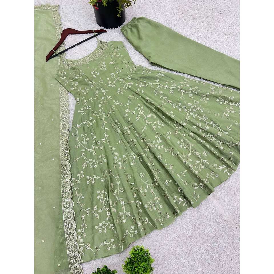 SRK Designer Embroidered Sequence Work Gown with Dupatta in Green Size M for Party or Prom Wear