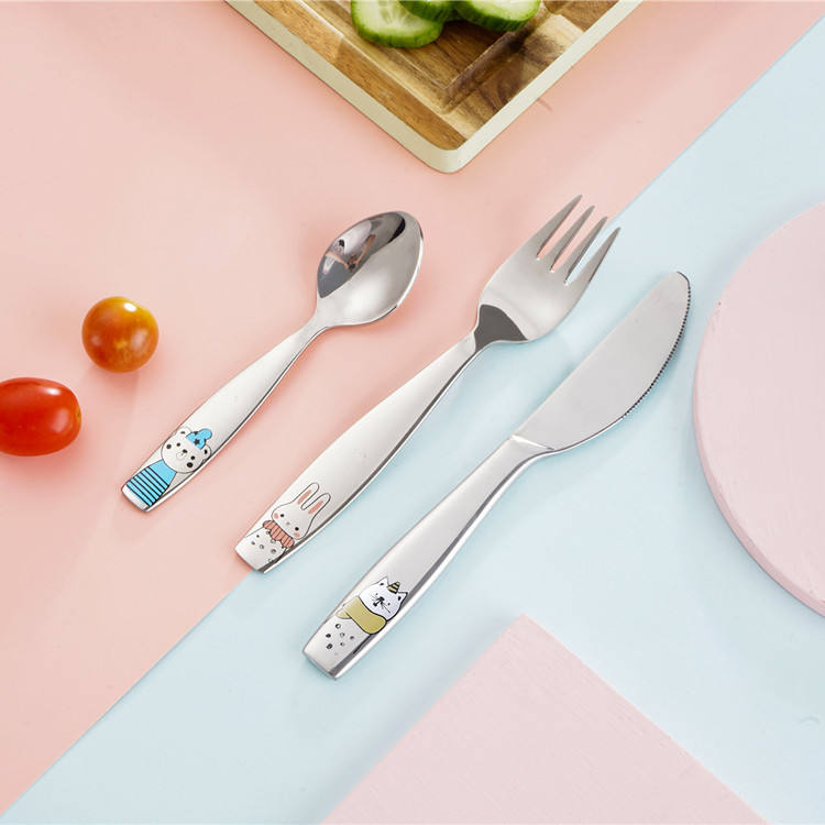 SS18/0 Modern Style Stainless Steel 430 Children Kids Cutlery Set With Cartoon Pattern Kids Cutlery Set Stainless Steel