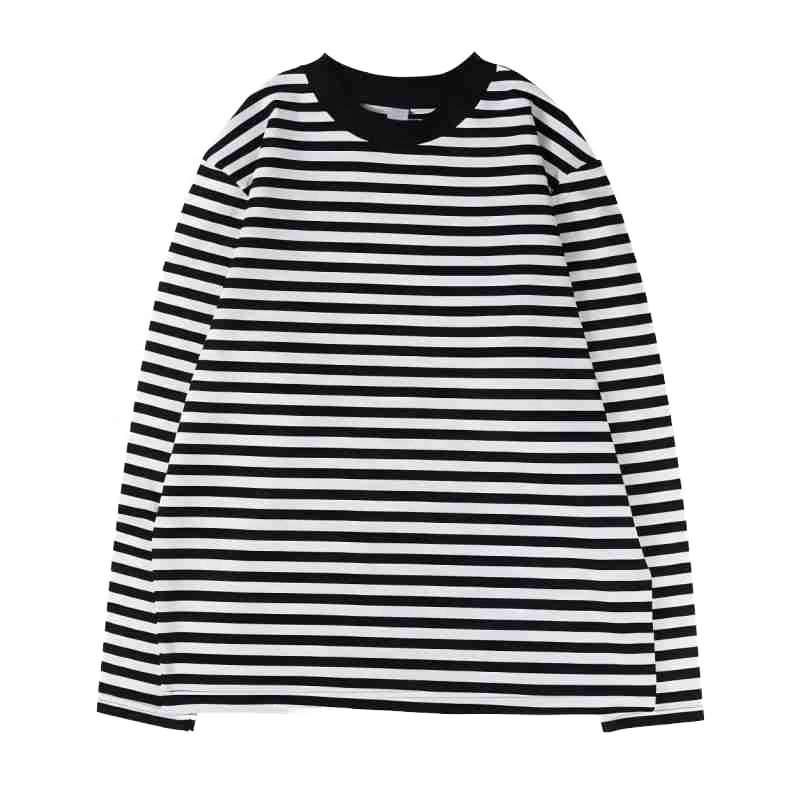 SSC Vintage Men's Long Sleeve Striped T-shirt 100% Cotton Custom 210g High Texture Contrast Backing O-neck Loose Tee for Unisex