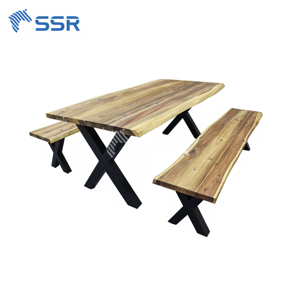 SSR VINA - Acacia Wood Live Edge Dining Table - Continuous Staves Solid Wood Tabletop/Worktop with Live Edge for Dining room