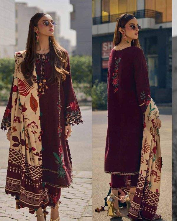 SSumaira Collection CHARIZMA POSHIMA Ladies Winter Dress Peach Leather Fabric with Rich Embroidery & Warm Wool Shawl Set