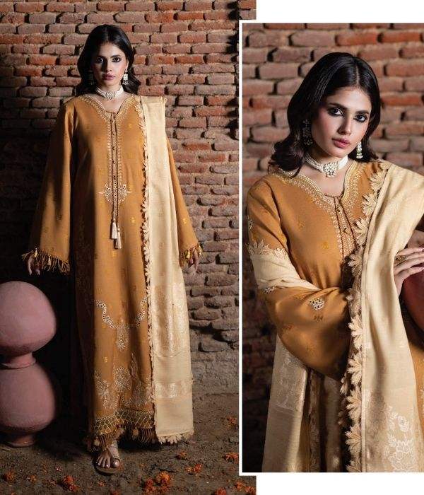 SSumaira Collection HUMDUM KHUMAR Premium Dhanak Embroidered Winter Outfit for Women with Elegant Jacquard Shawl & Dyed Trouser