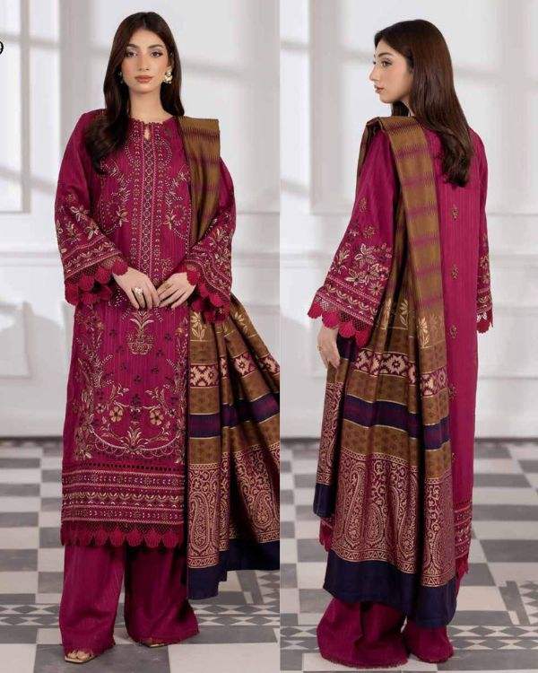 SSumaira Collection JOHRA AMEELI Stylish Winter Embroidered stitched Outfit for Women with Jacquard Shawl