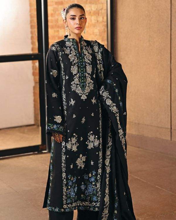 SSumaira Collection Luxury Peach 3PC Embroidered Dress with Elegant Lace and Shawl