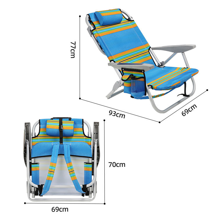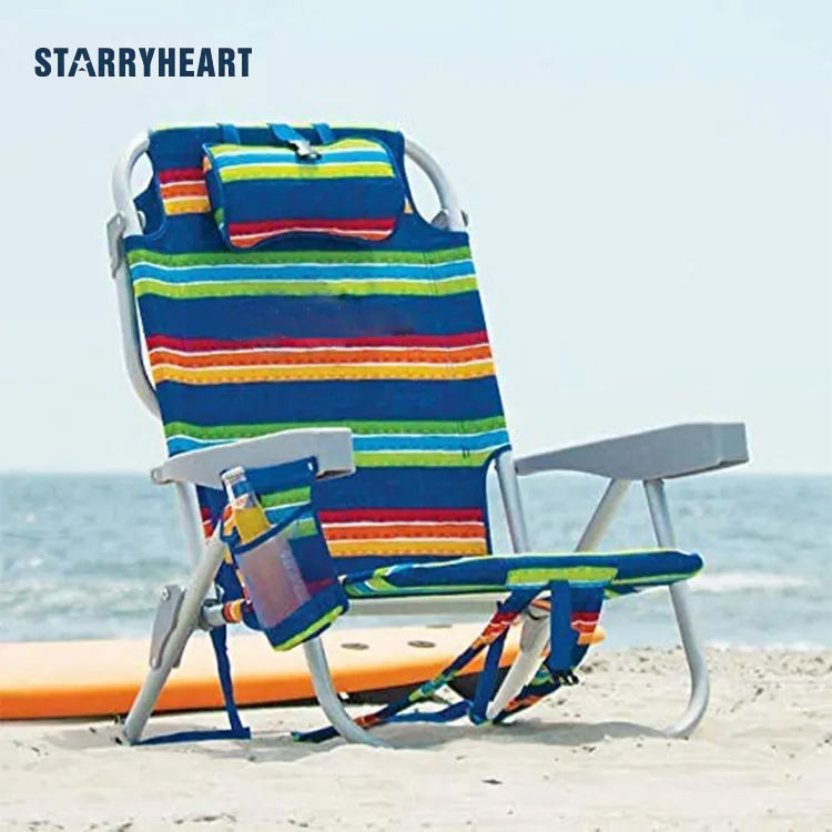STARRYHEART Wholesale Portable Folding Aluminum Beach Lounge Chair Stripes Backpack Beach Chair