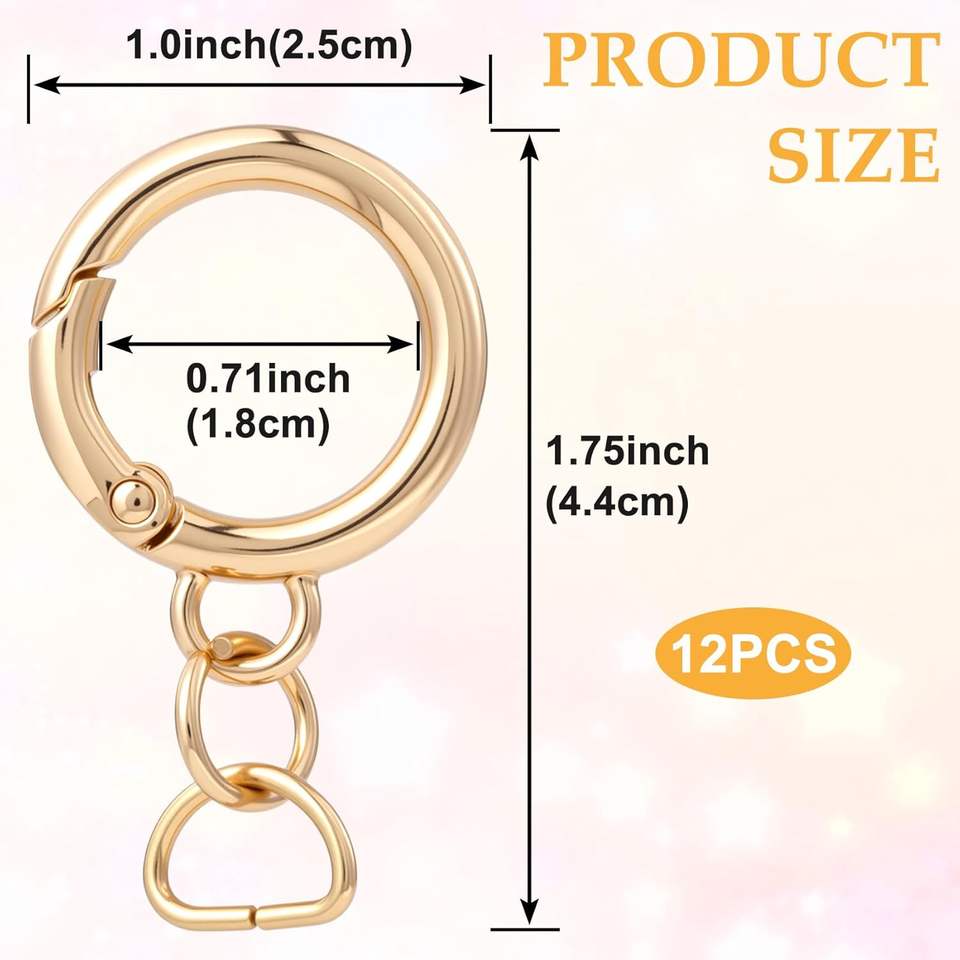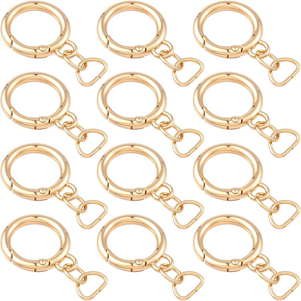 STSTR Pcs Round Spring Clips With D Ring Gold Metal Keyring Purse Clip Heavy Duty Opening O Ring Carabiner For Keychains Buckle