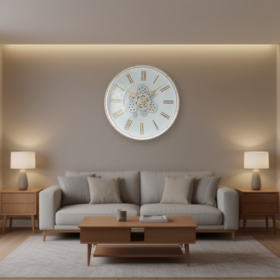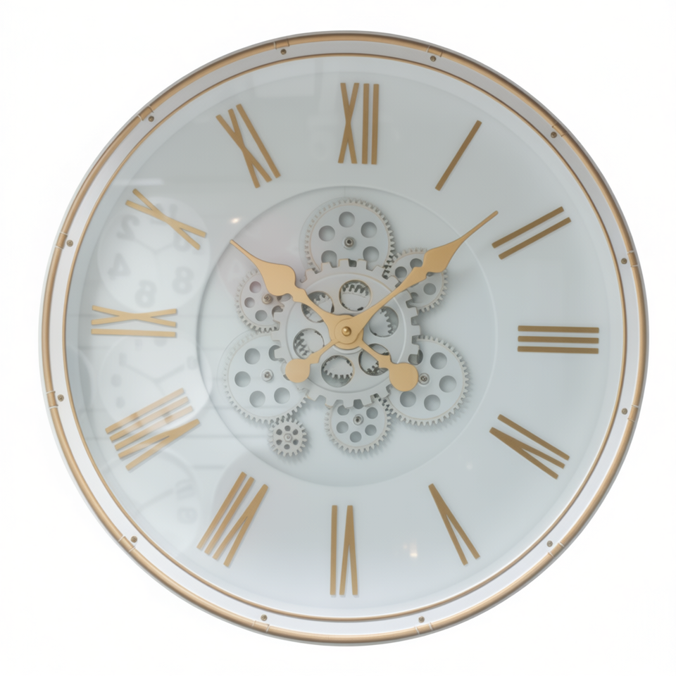 SUDA RESOURCE SA DE CV 8316F 50CM Gear Wall Clock Roman Numerals Art Deco Decorative Quartz Analog Round Metal Home Office