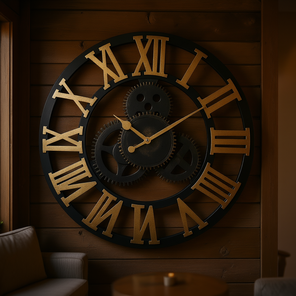 SUDA RESOURCE SA DE CV Vintage Wall Clock 6682A Black Gold Exposed Gears Round Analog Quartz Home Decor