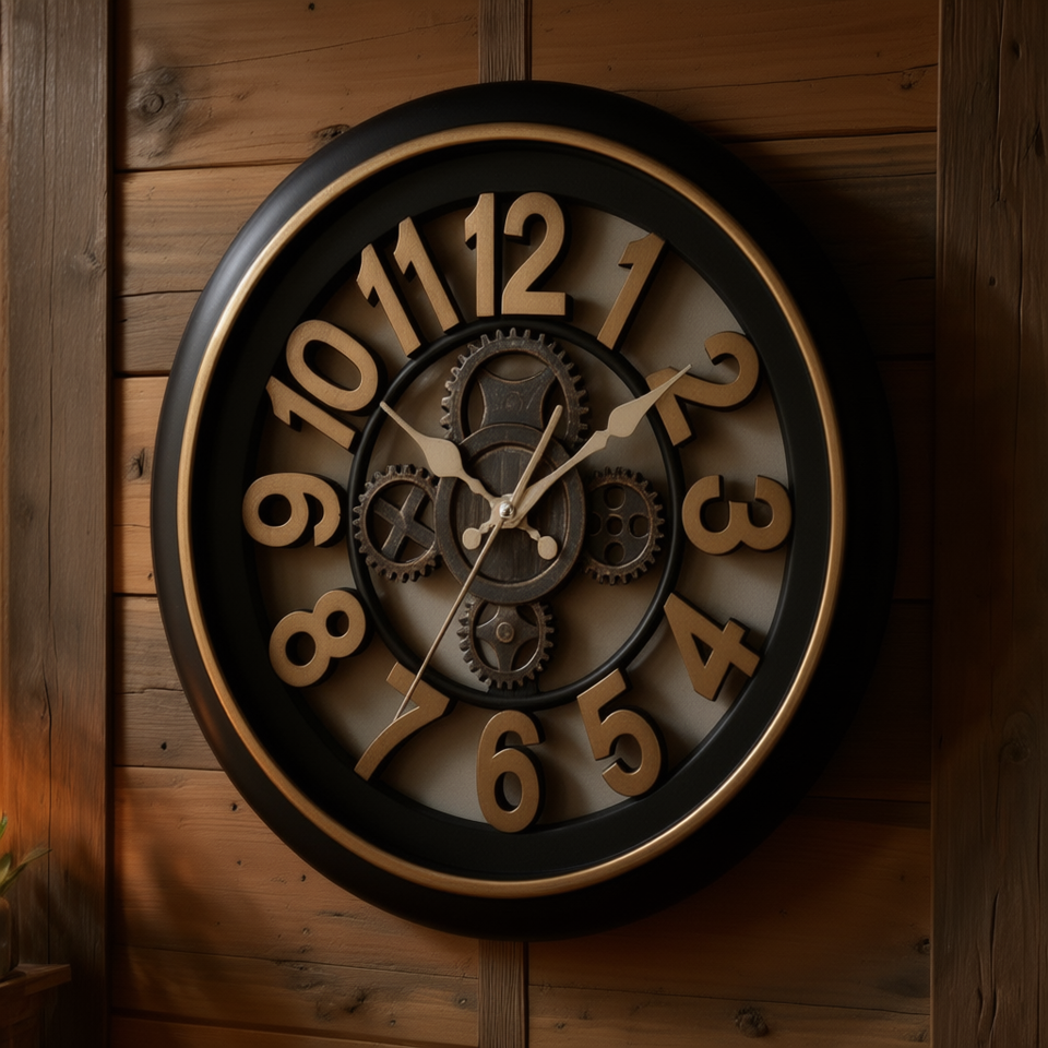 SUDA RESOURCE SA DE CV Vintage Wall Clock 6701A Gear Design Analog Quartz Metal Circular Home Decor