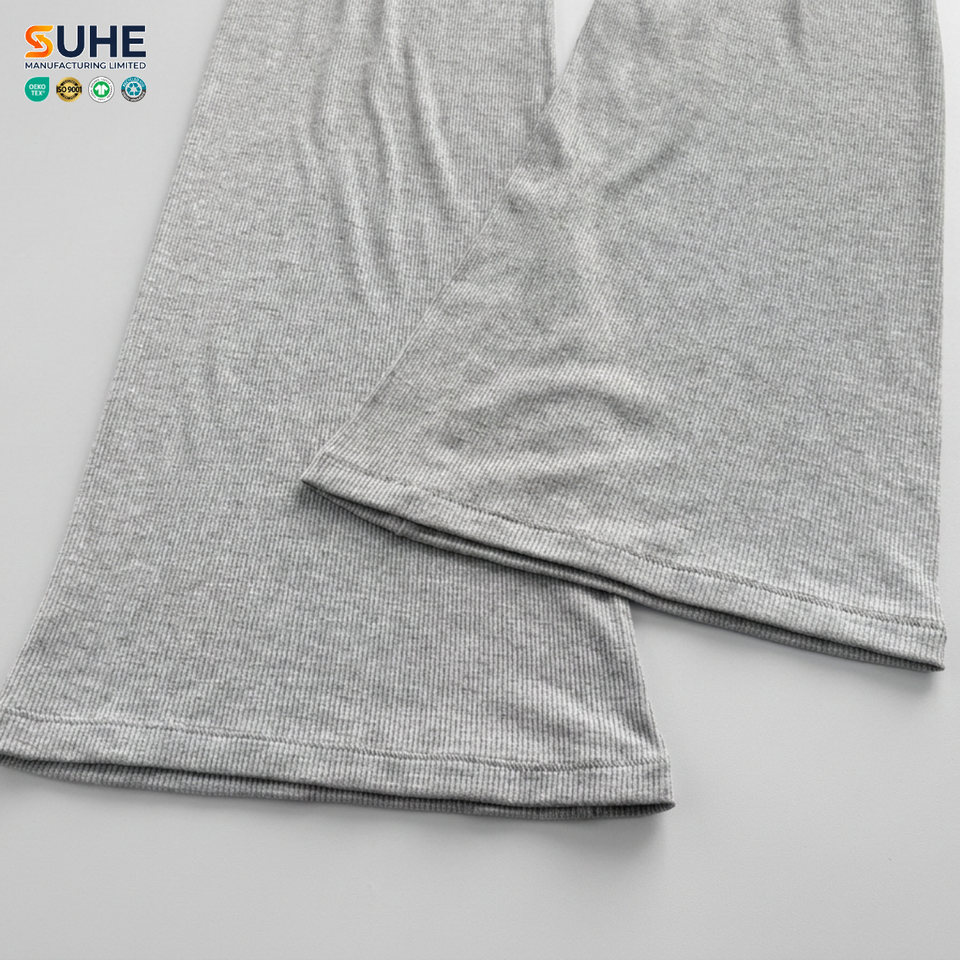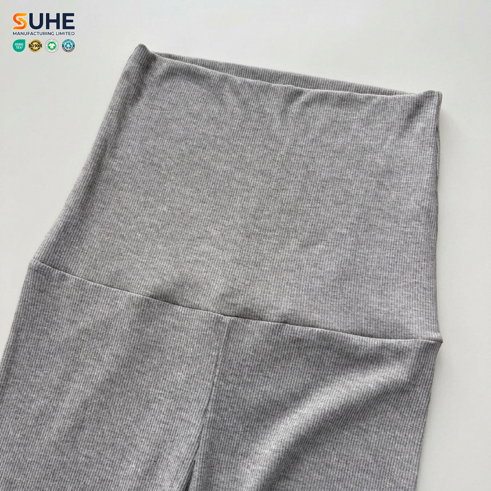 SUHE OEM ODM Ribbed Modal Spandex Elastic Mid Waist Regular Flare Leggings Womens Yoga Bootcut Summer Pants