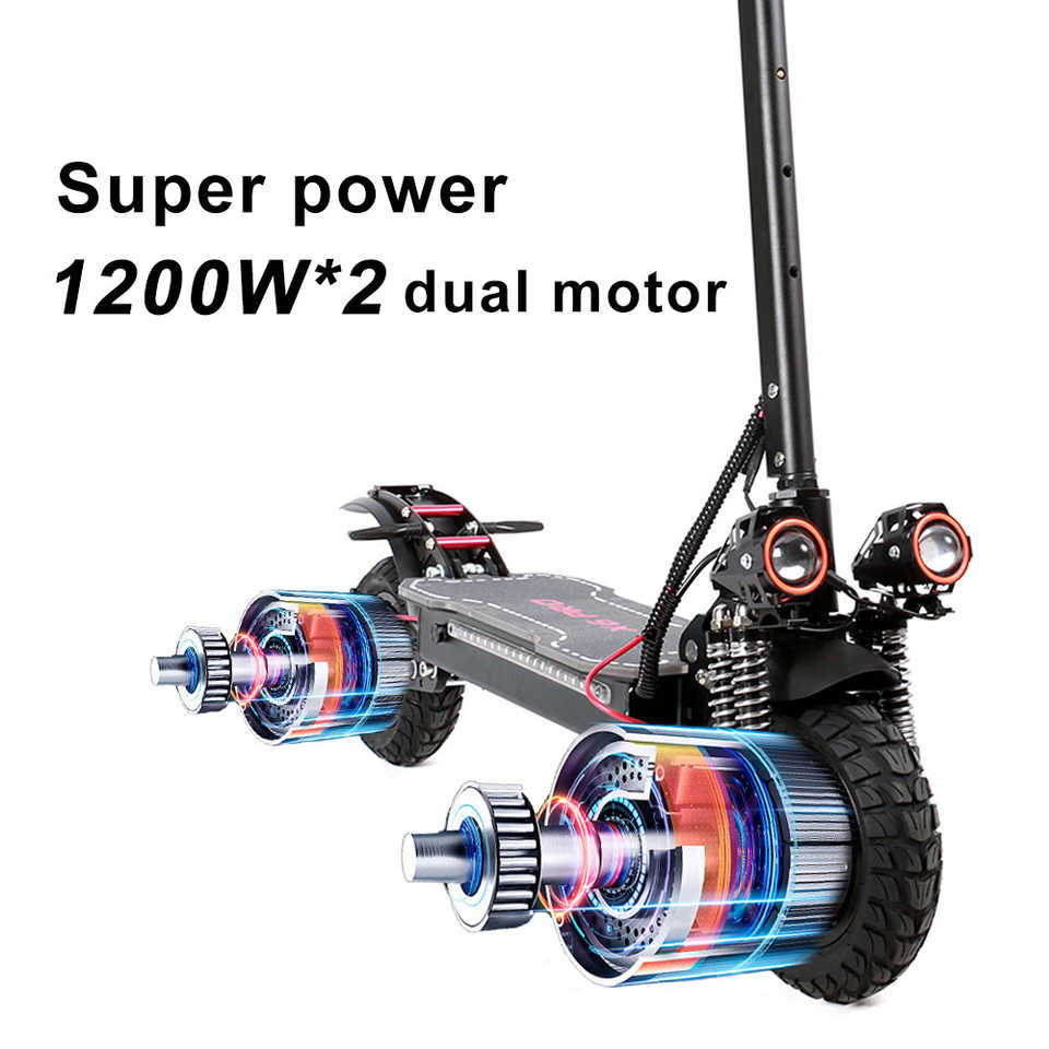 Motor rated power:1200 Watts x 2 (Rear+Front Motors)