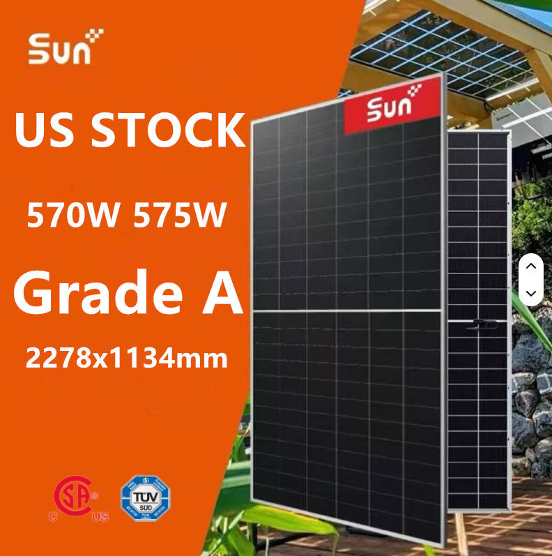 SUNPLUS 570W 575W Hot Sale Bifacial Mono Solar Modules for Solar Farms US Stock