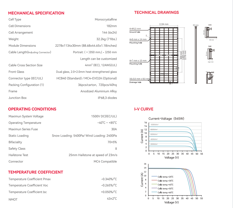 2278 x 1134 x 30 mmPanel Dimensions