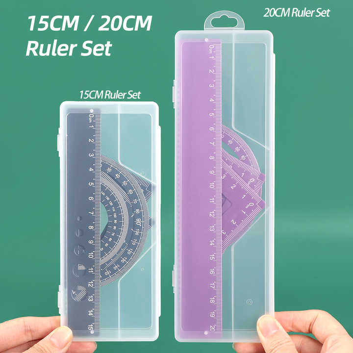 SUNSHING Wholesales Slim Ruler Case Geometry Tool Box with Transparent Ruler Set Colorful Students Ruler with PP Storage Box