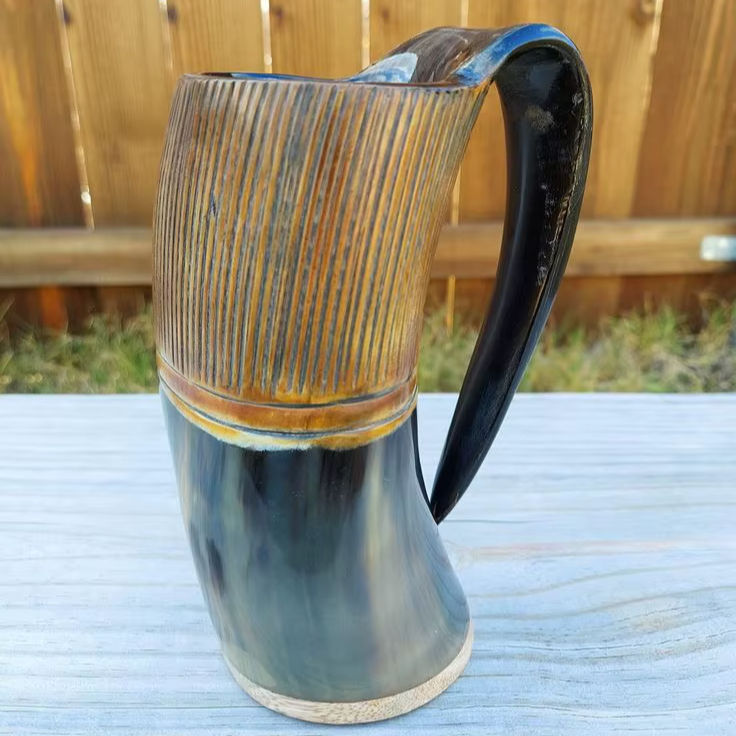 SUPAR QUALITY Natural Buffalo Horn Mug with Handle Modern Eco-Friendly High Quality for Beer Wine Mead Ale Drinking Horn Tankard