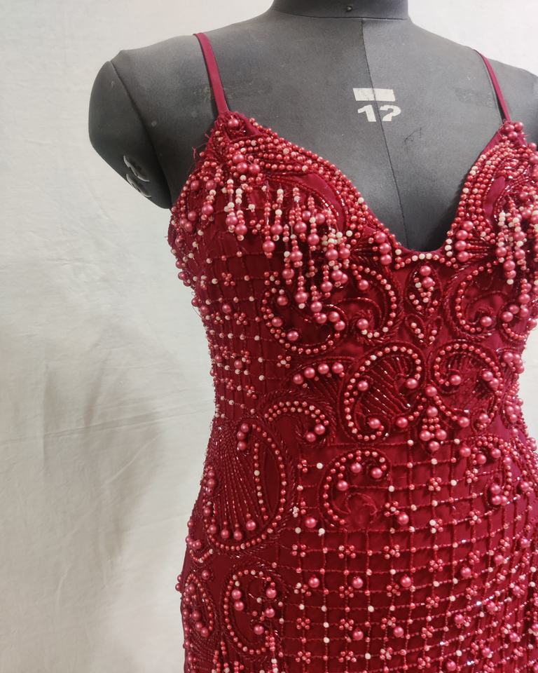 hand embroidery dress using sequins, glass beads, stones ,crystals.