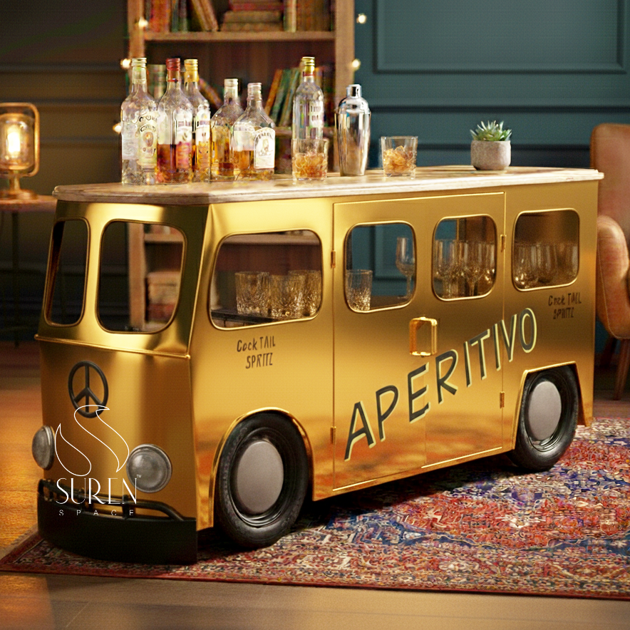 SUREN SPACE Handcrafted Iron and Mango Wood Home Bar Furniture with Storage Modern Design From Rajasthan India