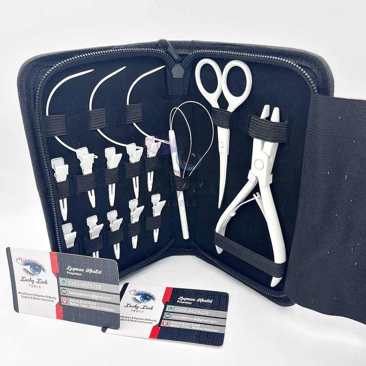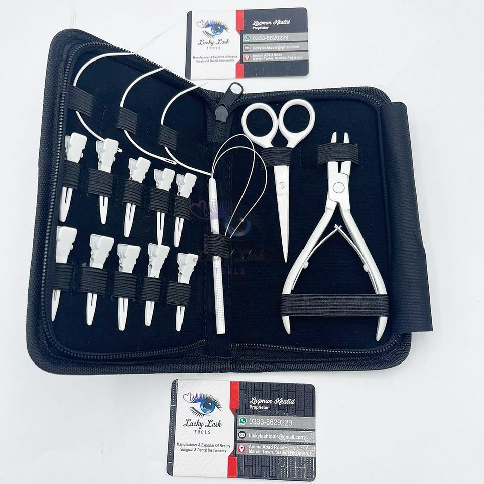 Professional SW-Silver White Hair Extension Beading Tool Kit Plier Customized Label Needle Tool Kit Set for Hair Extensions