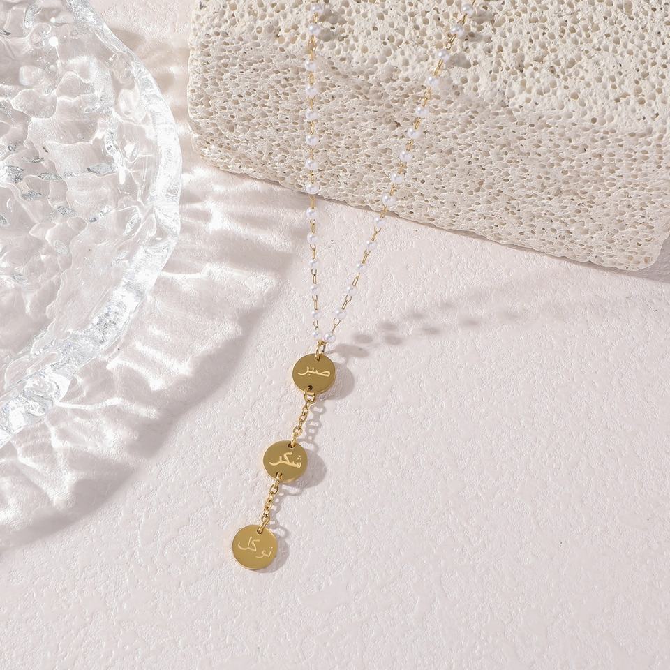 Sabr Shukr Tawakkul Arabic Islamic Calligraphy Quran Hypoallergenic Ramadan Fashion Jewelry Necklaces Stainless Steel Wholesale