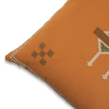Sabra Silk Morracan Embroidery Cotton Decorative Boho Car Sofa Chair Bed Throw Square CUshion Cover With Pom Pom 45 X 45 cm