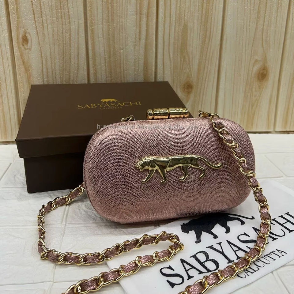 Sabyasaachi Soft Satin Acrylic Evening Clutch Handcrafted Fashion Bridal Wedding Festival Candy Pattern Chain Strap Luxury Purse