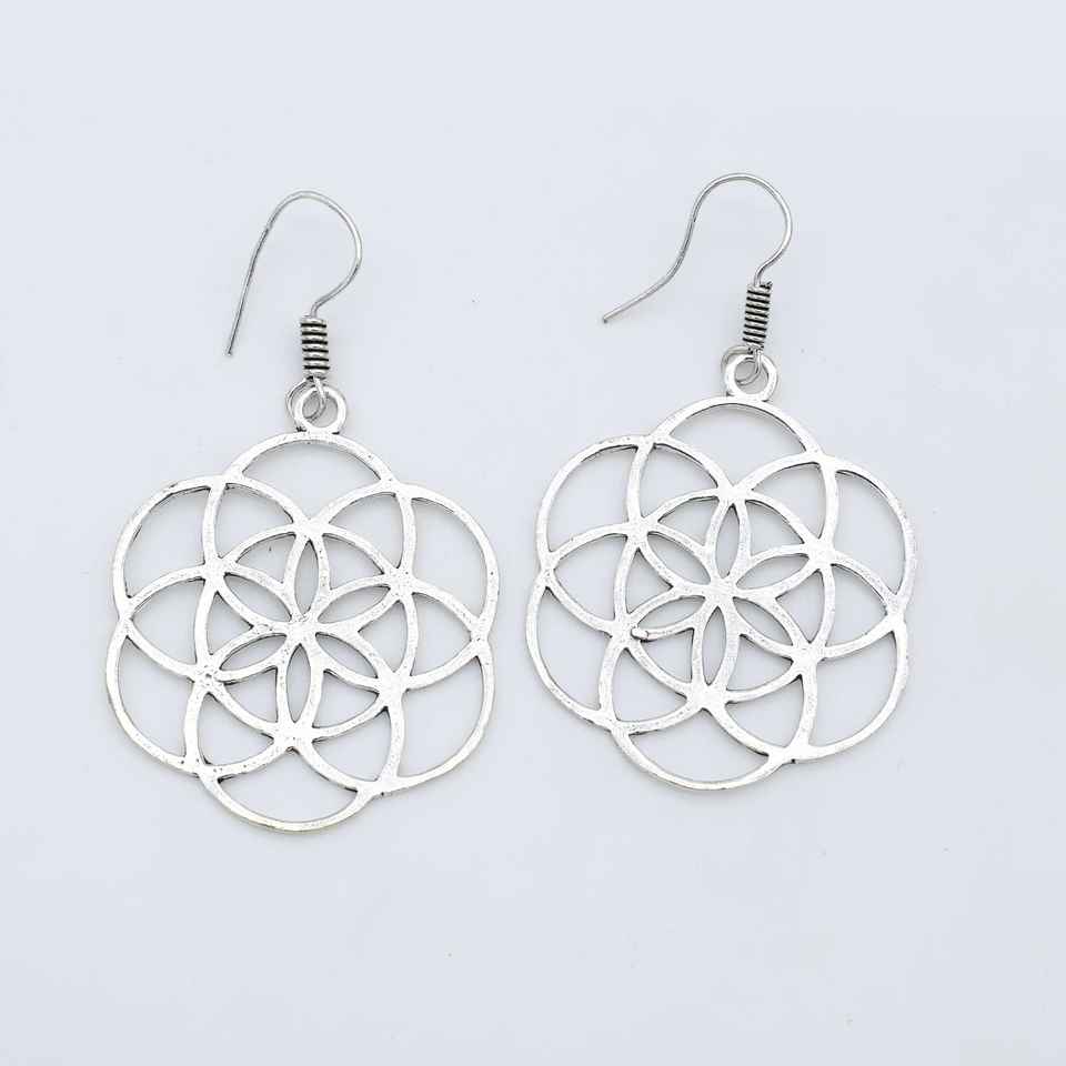 Sacred Geometry Seed of Life Earring Designer Hoops Jewellery 925 Sterling Silver Women Girls Ethnic Trendy Exclusive Floral