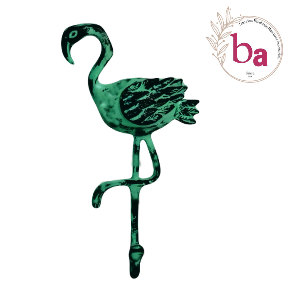 Safari Green Distressed Cast Iron Flamingo Bird Wall Decorative Item Coat Hat Hooks Keychain Hanger Handcrafted Hooks Rails