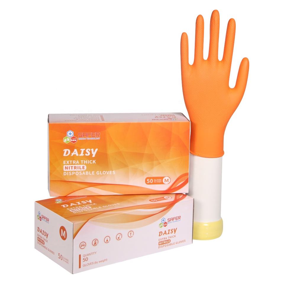 Safer Medico OEM Customizable Orange Diamond Disposable Safety Gloves Factory Wholesale Soft Waterproof Nitrile Medical