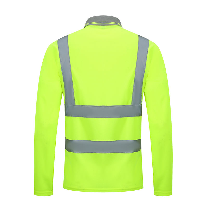 Safety Reflective Stripe POLO Black and Green Long Sleeve Men's Workwear Shirts Hi Viz