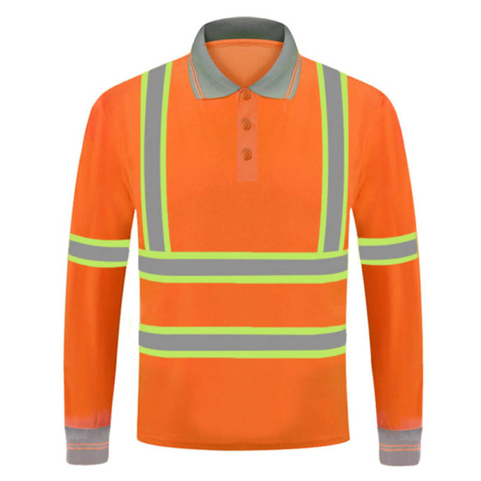 Safety Reflective Stripes Men Hi Vis Working wear Summer Long Sleeve Security Polo T Shirts for Construction