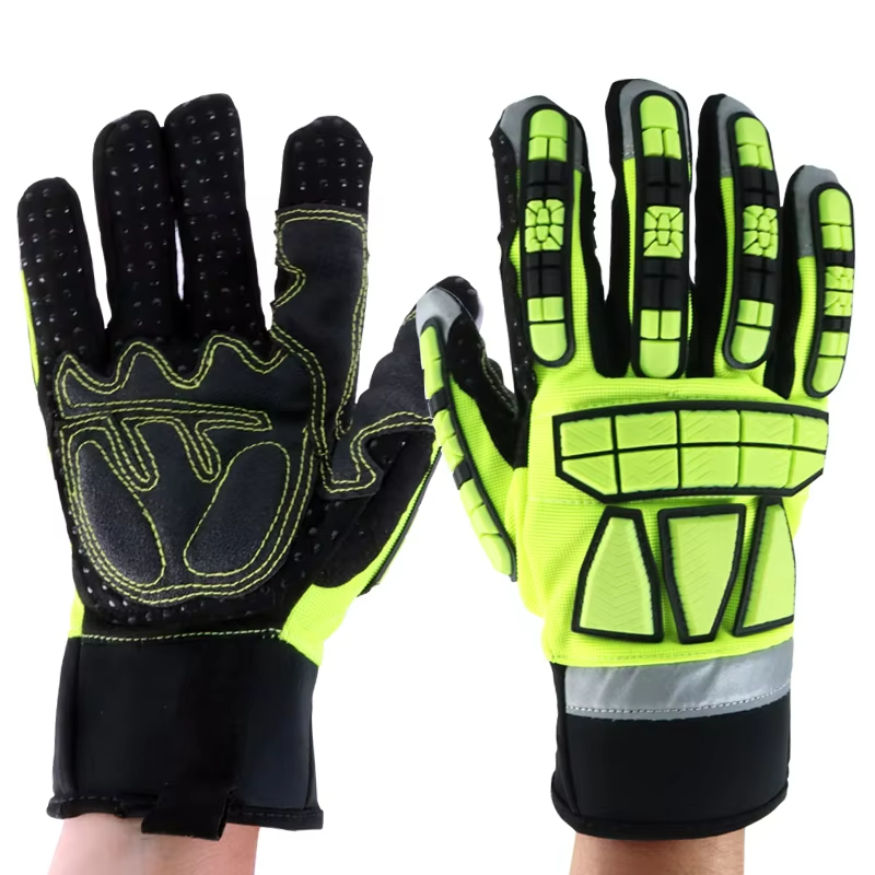 Safety Work Gloves Impact Protection Cut Resistant Vibration Proof Anti Slip TPE Leather Palm Breathable Flexible 8 oz Thickness