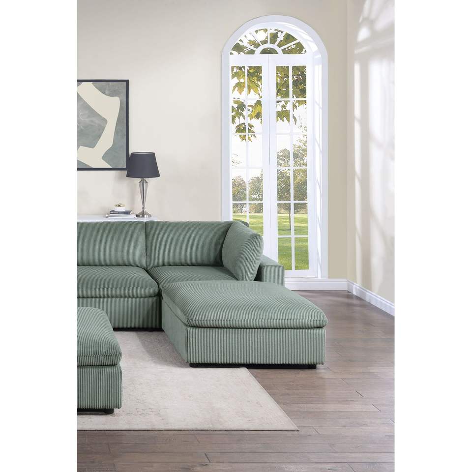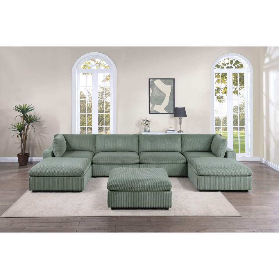 Sage Color 7pc Modular Sectional Set Corduroy Upholstery Couch 2 Corner Wedges 2 Armless Chairs 3 Ottomans Living Room Furniture