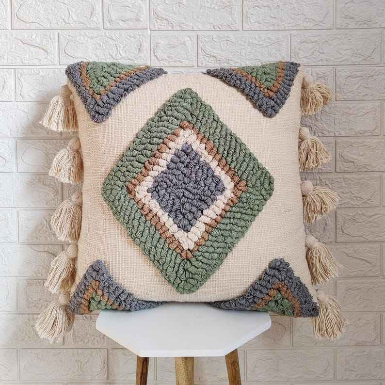 Sage Green Beige Gray Multi Color Cotton Hand Embroidered Tufted 18x18 20x20 Customizable Polyester Fiber Filled Home Decorative