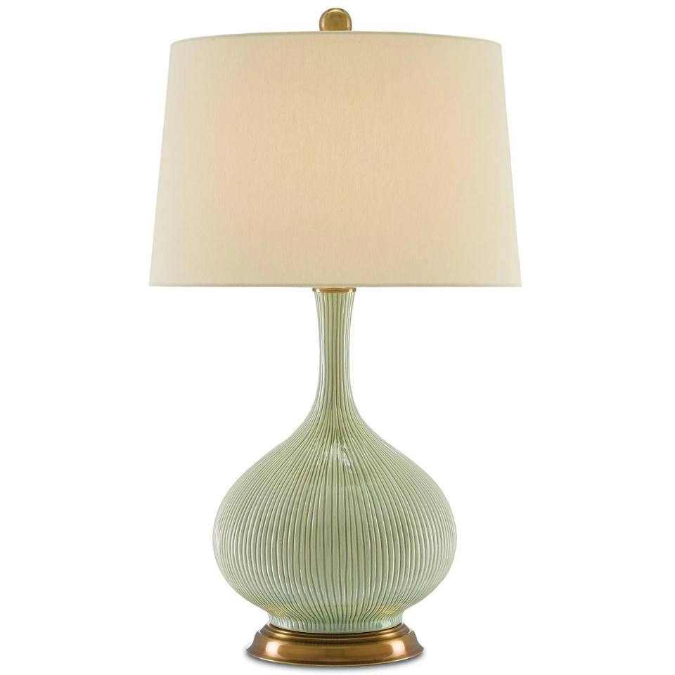 Sage Green Ribbed Ceramic & Brass Base Modern Classic Table Lamp | Timeless Sophisticated Lighting for Hotel Bedroom & Office