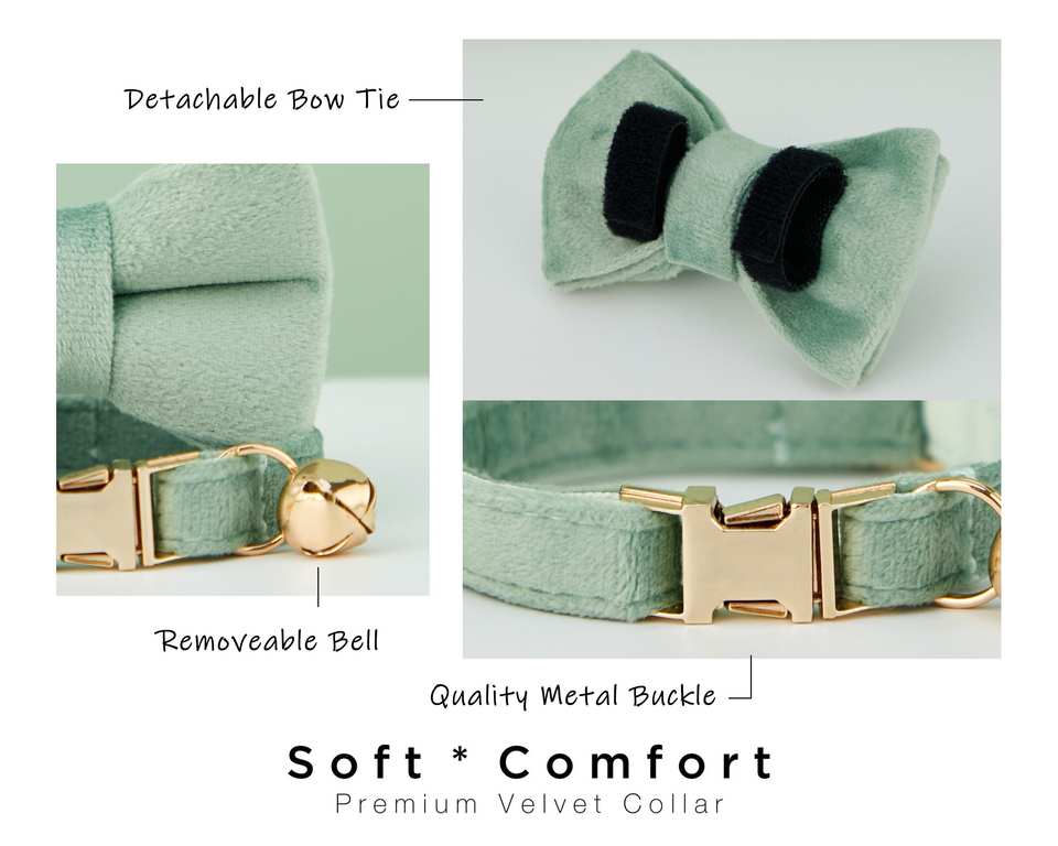 SageGreen Veet Personalized Cat Collar Bow Tie Lead Set,Custom Engraved Kitten Puppy Name Tag & Phone Number,Small Dog Male Boy